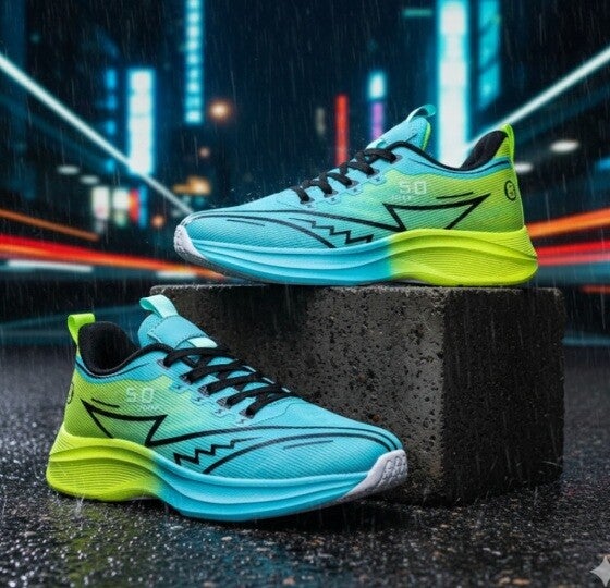 🎨 Opvallende Stijl: De schoenen zijn voorzien van een modern, tweekleurig design met neon accenten (zoals geel/blauw of paars/roze), waardoor u niet alleen goed presteert, maar er ook fantastisch uitziet.