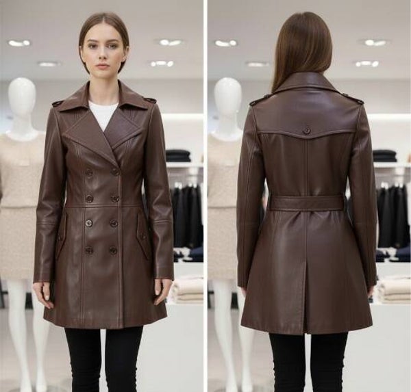 Deze halflange damesjas van hoogwaardig leer combineert tijdloze elegantie met een moderne snit, waardoor het een onmisbaar item is in elke garderobe. De jas is ontworpen in de stijl van een klassieke trenchcoat, maar uitgevoerd in soepel, duurzaam leder dat zowel verfijning als een stoere touch biedt.