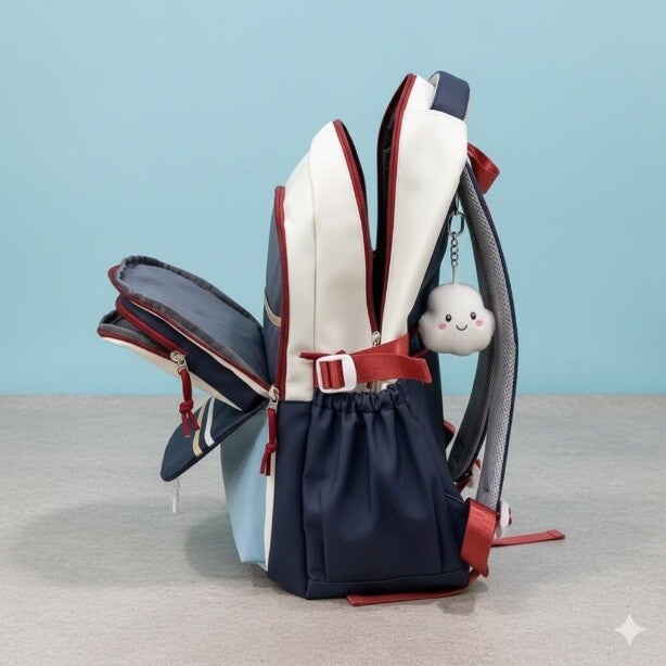 Deze trendy en functionele rugzak is perfect voor studenten die op zoek zijn naar een combinatie van ruimte, comfort en een schattig design. De rugzak is verkrijgbaar in drie stijlvolle kleurencombinaties: Beige/Bruin/Wit, Zwart/Wit en Marineblauw/Bordeaux/Wit.