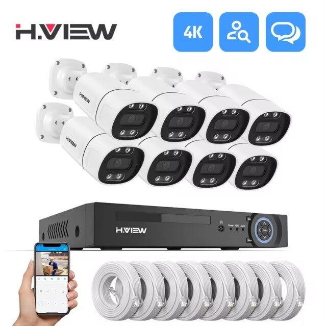 H.VIEW 8MP 4K PoE Beveiligingsset (8 Camera's)